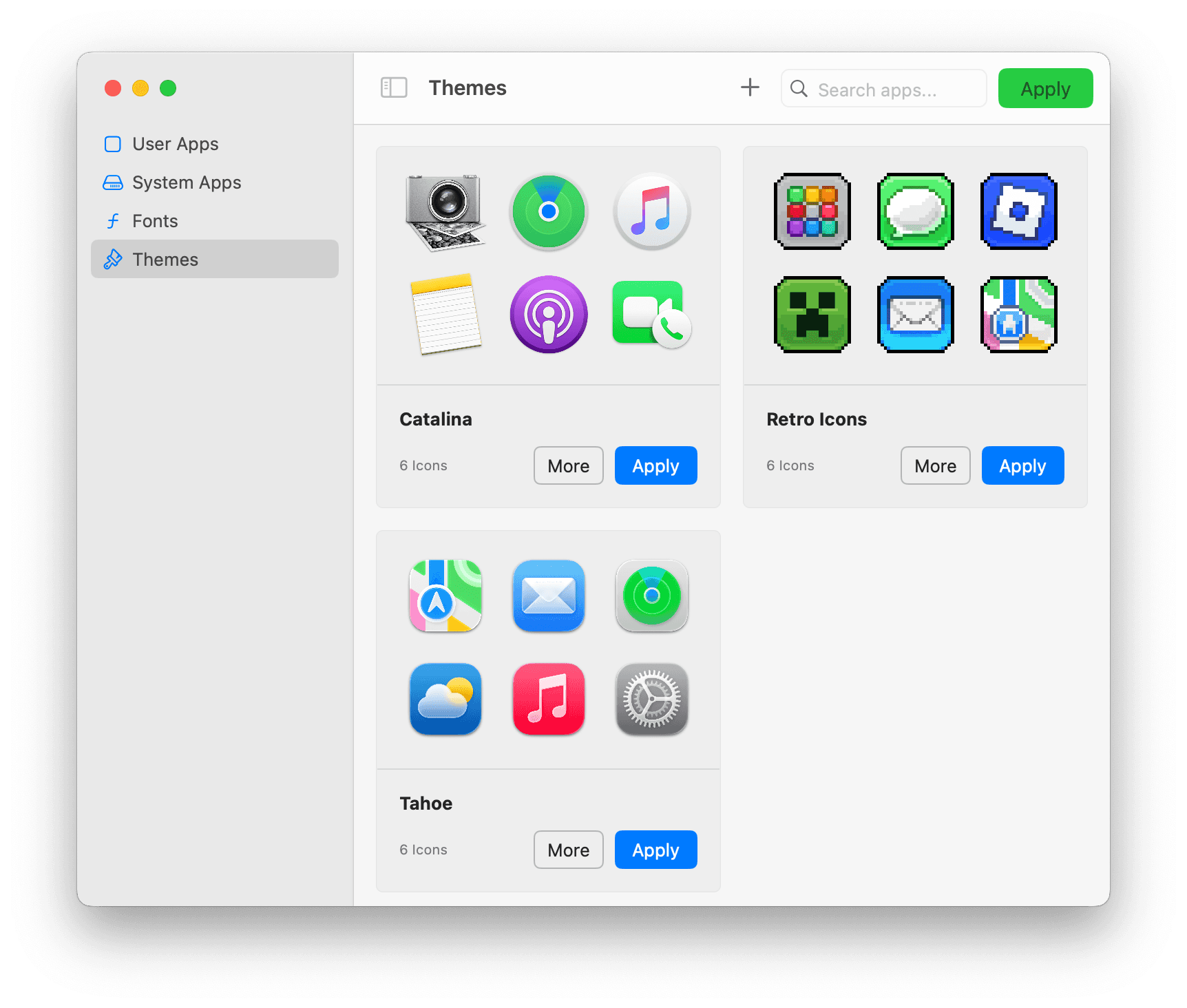 Recoat gives you complete control over your icons' aesthetics. Select an image, click apply, and your icons transform - no background processes, no reapplying. The way theming should be: set-and-forget.
